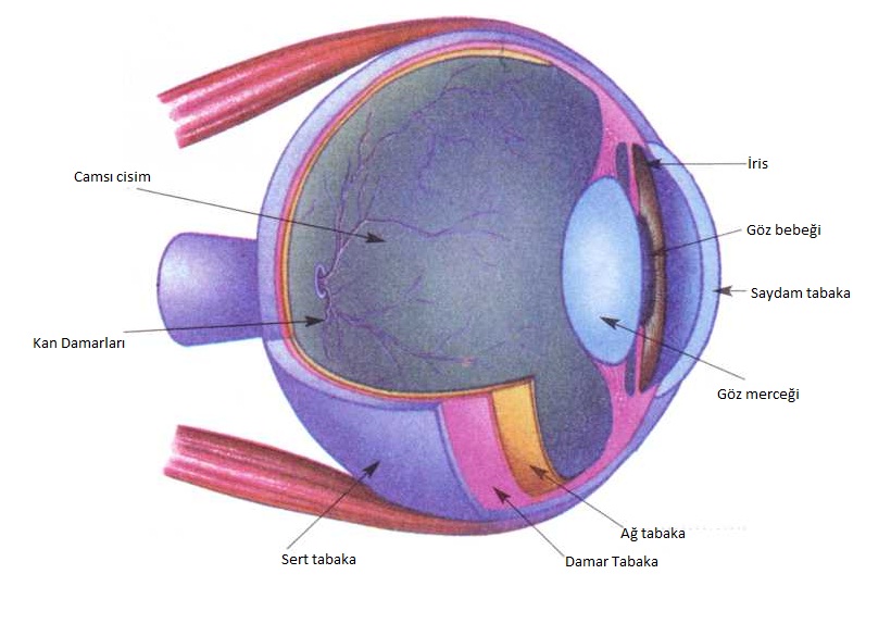 Aşağıdaki göz şeklini inceleyerek okların gösterdiği kısımların adlarını noktalı yerlere yazınız.