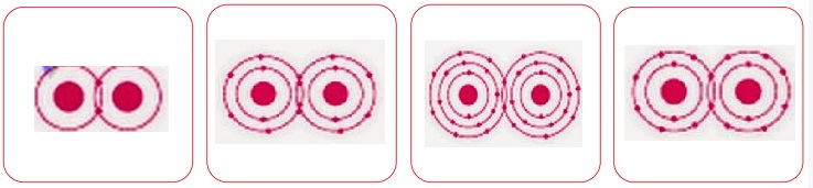 • Bu elementler doğada moleküler hâlde bulunur. Aşağıda verilen kutucuklara bu elementlerin molekül modellerini, nasıl bağ oluşturduklarını gösterecek şekilde çiziniz.