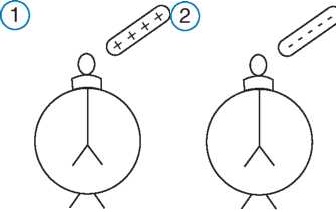 1 numaralı elekroskopa pozitif yüklü çubuk yaklaştırıldığında cisim, yapraklardaki negatif yükleri topuza doğru çeker ve etki ile elektriklenme meydana gelir. Böylelikle topuz negatif yüklü olur, yapraklar pozitif yüklenerek açılır. 2 numaralı elektroskoba negatif yüklü bir çubuk yaklaştırıldığında cisim, topuzdaki negatif yükleri yapraklara doğru iter ve etki ile elektriklenme olur. Böylelikle topuz pozitif yüklü olur, yapraklar negatif yüklenerek açılır.
