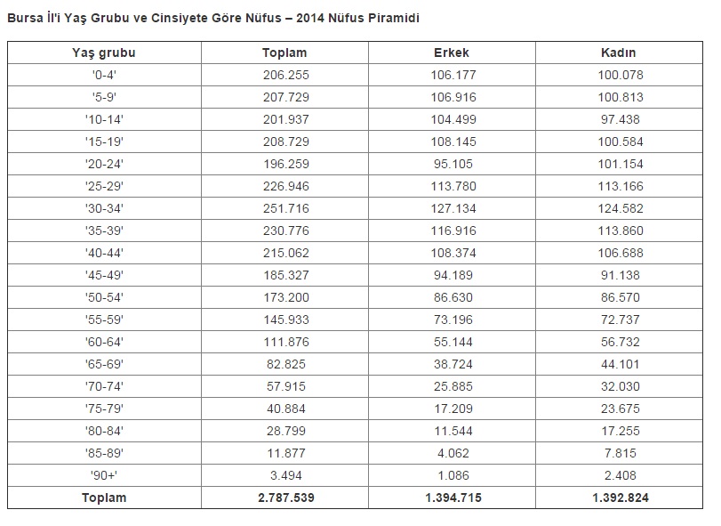 Bursa İli nüfus yapısı