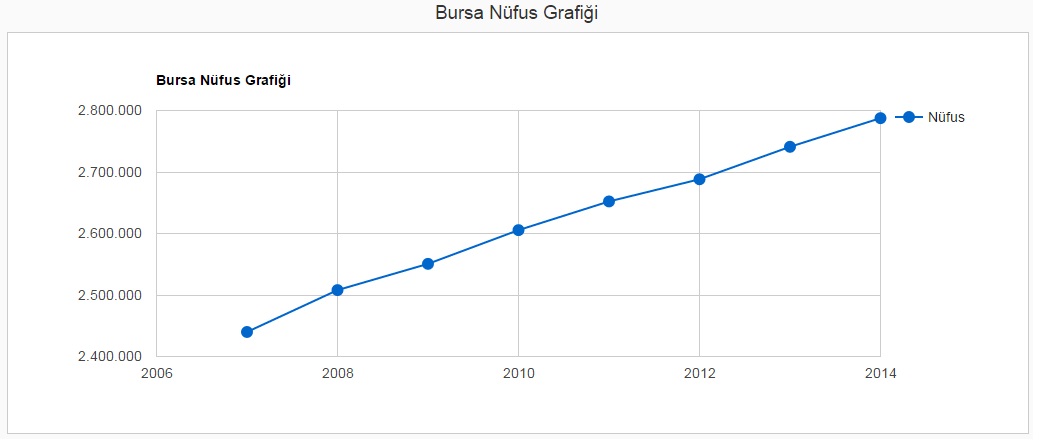 Bursa ilinin kaynaklardan nüfusla ilgili bütün verilerini bulup, bu konuyu grafiklerle açıklayacağım.