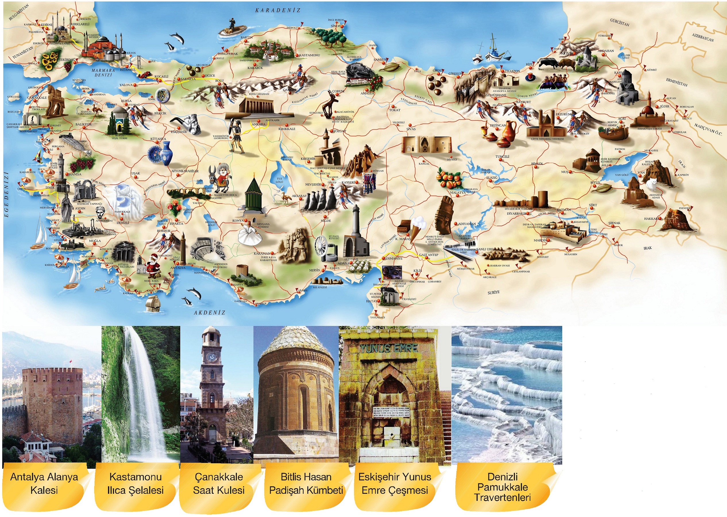 Resime tıkladığınızda büyük boyutunda, kendi ilinizdeki tarihi yerler ve doğal varlıklara ulaşabilirsiniz. Bu yönde aramalarınıza devam ederseniz sonuca ulaşmanız mümkün olacaktır. Burada bütün illerimizdeki doğal varlık ve tarihi yerlerin hepsi hakkında bilgi vermemiz maalesef mümkün değildir. içinden seçtiğimiz bir kaç yer hakkında örnek bilgi vereceğiz.