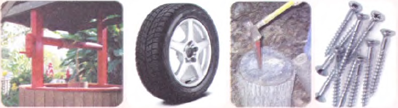 Aşağıdaki fotoğraflarda verilen ve birer basit makine olan çıkrık, tekerlek, kama (keski) ve vidadan nasıl yararlandığımızı, bunların geçmişte ve günümüzde insanlığa nasıl yararlar sağladıklarını araştırınız.