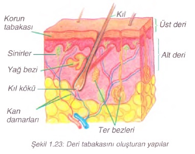 ayarlanmasını sağlar. Ter bezleri boşaltım olayına da yardımcı olur. Yağ bezleri ise salgıladıkları yağlarla derinin yumuşak kalmasını sağlar.