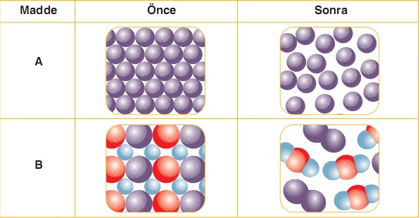 A maddesi fiziksel B maddesi kimyasal değişime uğramıştır.