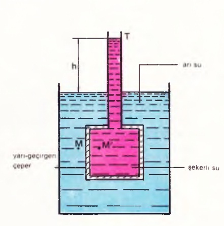 Belli koşullar altında bulunan zarlar ya da yarı-geçirgen çeperler düzeyinde oluşan olaylar bütünü,geçişme diye adlandırılır. Yarı-geçirgen bir çeper, belirli bir cisim (sıvı ya da gaz) dışındaki başka hiçbir maddeyi geçirmeyen çeper olarak tanımlanır. Gözeneklerinde bir bakır ferrosiyanür çökeltisi oluşturulmuş bir kap, arı su için yarı geçirgen bir çeperdir. Şekerli suyla doldurulan böyle bir kap, arı suya batırıldığında (Bkz. Çizim), su, T tübünde sıvı bir h düzey farkı oluşturana kadar, kabın dışından içine geçer. Bu olay geçişme olayıdır. Sıvının h yüksekliği aynı yatay düzlem içindeki kabın iki yanında yer alan M ve M’ noktaları arasındaki bir basınç farkını gösterir. Bu basınç farkına,çözeltinin geçişme basıncı adı verilir.