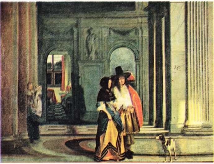 Sokağa ya da avluya bakan bir ev, bir yerden öbürüne açık bir kapıdan geçiş, ince bir hacim ve perspektif etkileri oyununu yaratmada, ressamın yararlandığı başlıca öğelerdir. 1662’de Delft’ten ayrılan Pieter de Hoogh Amsterdam’a yerleşti. Bu tarihten sonra sanatı giderek geriledi, resim alanındaki iyi nitelikleri de, Delft döneminin birer yansıması olmaktan öteye gidemedi.