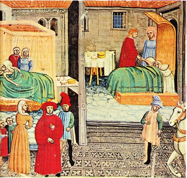 İbna Sina’nın Tıp Kanunu adlı yapıtı için gerçekleştirilmiş olan ve hekimin hastaları ziyaretini gösteren bir resimleme