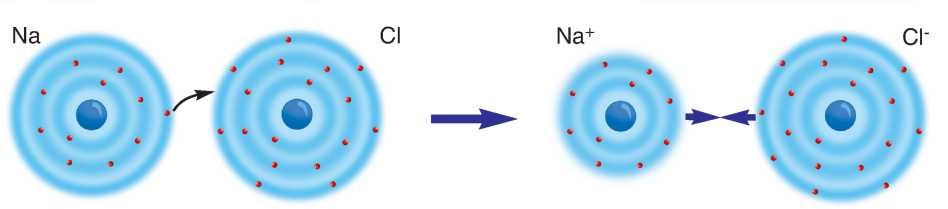 Aradaki kürdanın görevini gören, elektron alışverişi sonunda iyonik bağ oluşur.