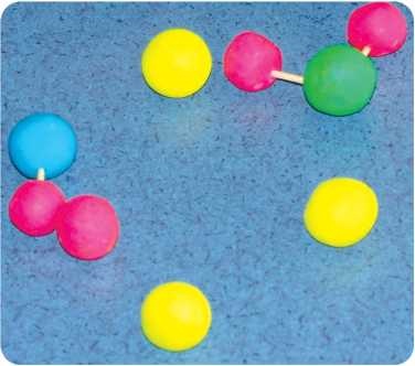 Bu fotoğrafta kullanılan kürdanlar molekül modellerini birbirine bağlamıştır.