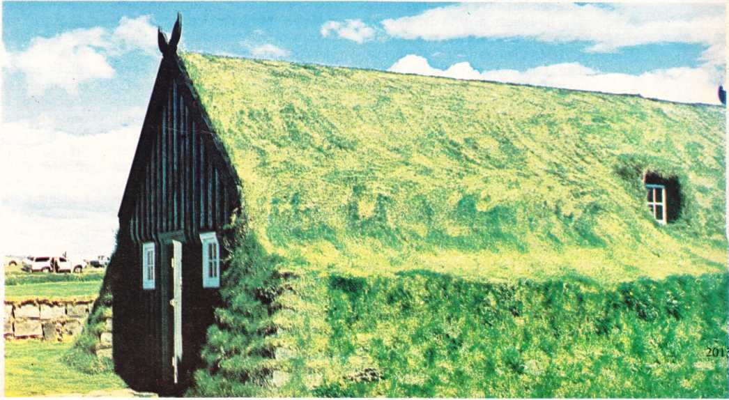 İzlanda Toprakla kaplı olduğu için üstünde otlar bitmiş olan Arbaer Kilisesi