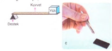Destek noktası yüke yaklaştıkça yükü kaldırmak daha kolay hale gelmektedir.