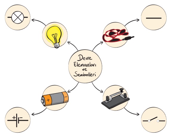 Bir devrenin şemasını çizebilmek için nelerin bilinmesi gerekir? Devre elemanları çizebilmek için öncelikli olarak elemanlarının evrensel sembollerinin bilinmesi gerekir. Elektrik devresi şeması için bu devrede, aşağıdaki resimden yararlanarak, kaç adet pil yani enerji kaynağı olduğunu, kaç adet ampul olduğunu, anahtarları ve kaboların nasıl bağlandığını bilmemiz gerekir.