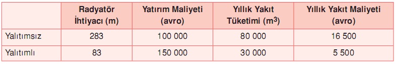 Aşağıdaki çizelgede 32 dersliği olan 3 katlı bir okulun yalıtımlı ve yalıtımsız olması durumlarındaki yakıt maliyetleri verilmiştir. Çizelgeyi inceleyerek çizelge ile birlikte verilen soruları cevaplamaya çalışınız. 1. Neden yalıtımlı bir binanın radyatör ihtiyacı daha azdır? Yalıtımlı bir binada daha radyatör büyüklüğüne ihtiyaç duyar çünkü, yalıtımlı bir binada dışarıya ısı kaçışı daha az olacağından daha az […]