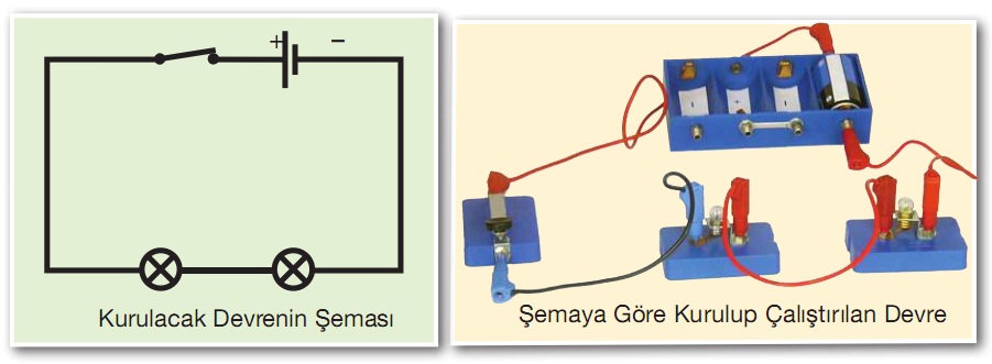 Yukarıda basit bir elektrik devresinin resmini ve devre şemasını görüyorsunuz. Her iki gösterimi de inceleyiniz. 1. Bu devrenin şeklini defterinize çizmeniz istense hangisini çizmek daha kolay olurdu? Aşağıdaki şekillere baktığımızda, üst kısımdaki sembollerle gösterilen şekillerini çizmek daha kolay olmaktadır. 2. Devre elemanlarının sembollerle gösterilmesi devrenin çizimini ve anlaşılmasını kolaylaştırıyor mu? Elektrik devresi elemanlarının sembollerle gösterilmesi, […]