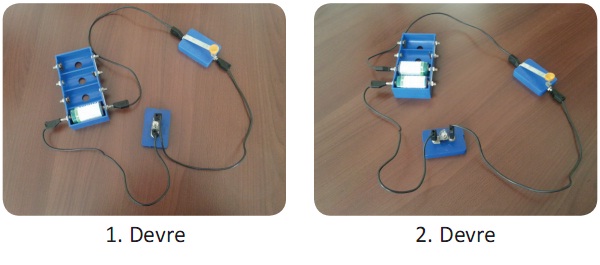 Birer pil ve ampulden oluşan devreye bir pil daha bağlarsak ampulün parlaklığı nasıl değişir? Bu şekilde oluşan basit devreye ampul sayısı aynı kalmak üzere pil ilave ettiğimizde, ampulün parlaklığını arttırmış oluruz. Aşağıdaki resimde pil sayısı arttırılan basit elektrik devresi görülmektedir.