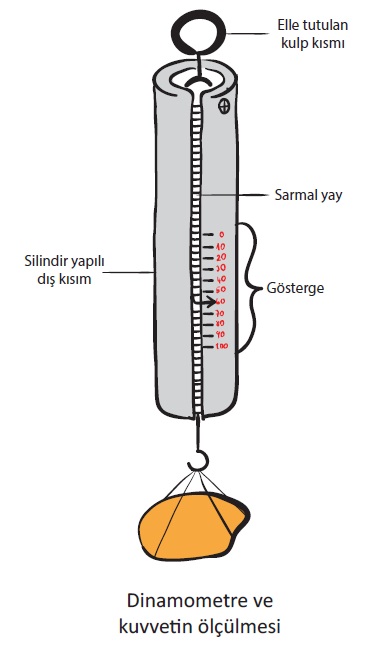 Arabayı iterken uygulanan kuvvetin büyüklüğü sizce nasıl ölçülebilir? Arabayı iterken aşağıdaki resimde görülen dinamometreye benzer bir kuvvetölçer ile ölçülebilir. Uygulanan kuvvetin büyüklüğünü bilmek, bu kuvvetin sebep olacağı etkiyi tahmin edebilmemizi sağlar. Kuvvetin etkisi ile şekil değiştiren, kuvvet ortadan kalktığında tekrar eski halini alan cisimlere esnek cisim denir. Lastik, yay ve sünger esnek cisimlere örnektir. Kuvvetin büyüklüğü, kuvvetin esnek cisimler üzerindeki geçici şekil […]
