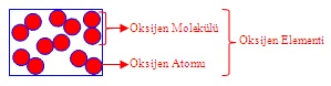 1 oksijen atomu + 1 oksijen atomu = oksijen molekülünü meydana getirir.
