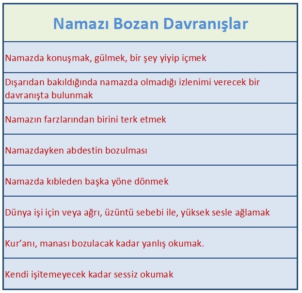 çok güzel namazı bozan davranışlar şeması olmuş bravo size…