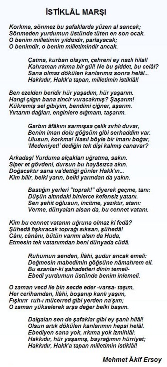 İstiklal Marşı sözleri 10 kıta tamamı ve Kısaca bilgi, Mehmet Akif ERSOY tarafından kaleme alınmıştır. Meclis tarafından 12 mart 1921 tarihinde İstiklal Marşı olarak kabul edilmiştir. İstiklal marşı Kurtuluş savaşının ilk yılları, bağımsızlık ruhu vermek, mücadeleyi kuvvetlendirmek için yazılmıştır. Mehmet Âkif Ersoy İstiklâl Marşı’nın güftesini, şiirlerini topladığı Safahat’a dahil etmemiş ve İstiklâl Marşı’nın Türk Milleti’nin […]