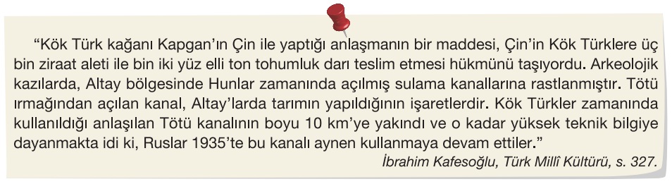 Köktürklerin Tötü ırmağından 10 km su kanalı açmaları, Türklerin coğrafyada ve mühendislikte geliştiklerini göstermektedir.