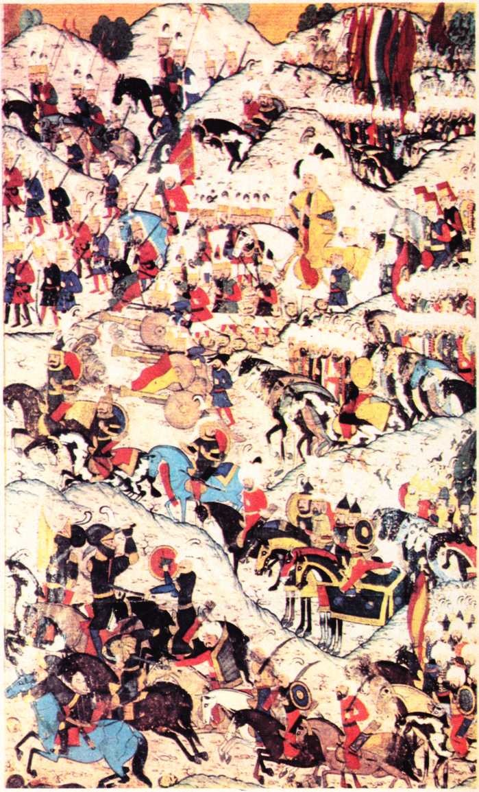Nakkaş Osman’ın Hünername için yaptığı, Kanuni Sultan Süleyman’ı Mohaç savaşı sırasında gösteren bir minyatür.
