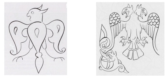 Hayvan figürlerinde en çok kullanılan yukarıda görülen tek ve çift başlı kartal, kudret, kuvvet, sembolüdür. Bu hayvanların insanların kötülüklerden koruduğuna inanılırdı. Şaman inancında kartal tılsımlı kabul edilen, kullanılan kutsal bir kuştur. Bu kutsallık sebebiyle mezar taşlarında da kartal figürleri kullanılmışlardır.