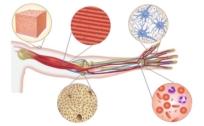 İnsan vücudunda kan, kas, kemik, sinir, yağ, destek, salgı, epitel doku gibi çeşitli dokular bulunur. Her dokuyu oluşturan hücrelerin şekli, görevi, yapısı, büyüklüğü ve dizilişi o dokuya özgüdür. Yukarıdaki şekilde vücudumuzdaki bazı dokuları oluşturan hücrelerin şekilleri verilmiştir. Bir dokunun hücresi ile başka bir dokunun hücresinin şekli, görevi, yapısı, büyüklüğü ve dizilişi aynı değildir. Örneğin vücudunuzu dış etkilere karşı korumakla görevli deri hücreleri yassı bir şekil almıştır. Kemiklerinizi oluşturan kemik hücreleri sert bir yapıdadır. Sinir iletiminden sorumlu olan sinir hücreleri ise ince ve uzun bir yapıya sahiptir. Çok hücreli canlılarda aynı yapı ve görevdeki dokular birleşerek organları, organlar birleşerek sistemleri, sistemler de birleşerek canlı organizmayı (canlı vücudunu) oluşturur.